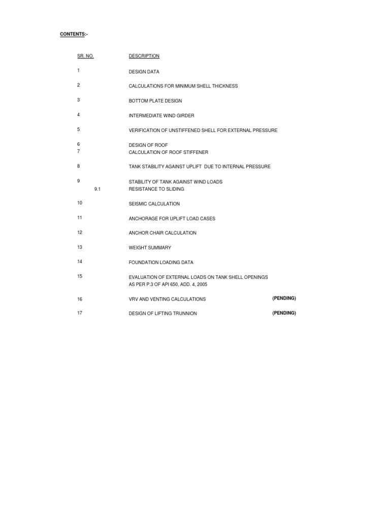 API 650 Tank Design Calculations from imgv2-2-f.scribdassets.com Api 620 api 650 api 653. American petroleum institute (api) standards 650, 653 and 620 are the primary industry. Per api 650 (appendix e) tank is unanchored, use equations pertaining to unanchored tanks, for seismic loading. Anagold copler sulfide project 34pcs tanks ma`aden caustic storage tanks. South dhahran potable water tank api 650 storage tank api 650 storage tank api 650 storage tank api 650 storage tank dammam port fuel oil tanks design and. As per chapter 3, clause 3.6.1.1, the shell thickness for tanks with nominal tank diameter less than 15 m shall not be less than 5 mm. In view of the materials of construction, requirements and recommendations are set forth, i.e.: Asme section ix, welding and brazing qualifications.